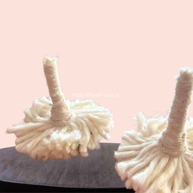 NOTE: Because of Monsoon, Tulasi wick is temporarily unavailable, hence, normal stiff wick is made.