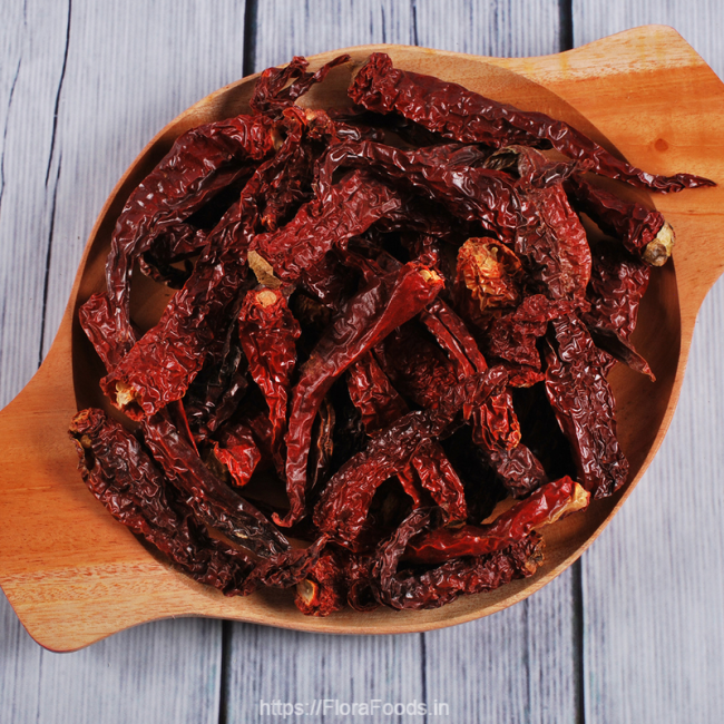 Byadgi Dry Red chilliis(Byadagi sukha Lalmirch) one of the specialty in chilli variety. It is known for its perfect colour, taste and spice. The less spicyness makes it more favourable and healthy to be used in many masalas and preparations. It doesnot cause acidityor burning sensation. Byadagi red chilli can be used as it is in seasonings, can be ground to powder & added in curries, dals, Rasam and Sambhar.