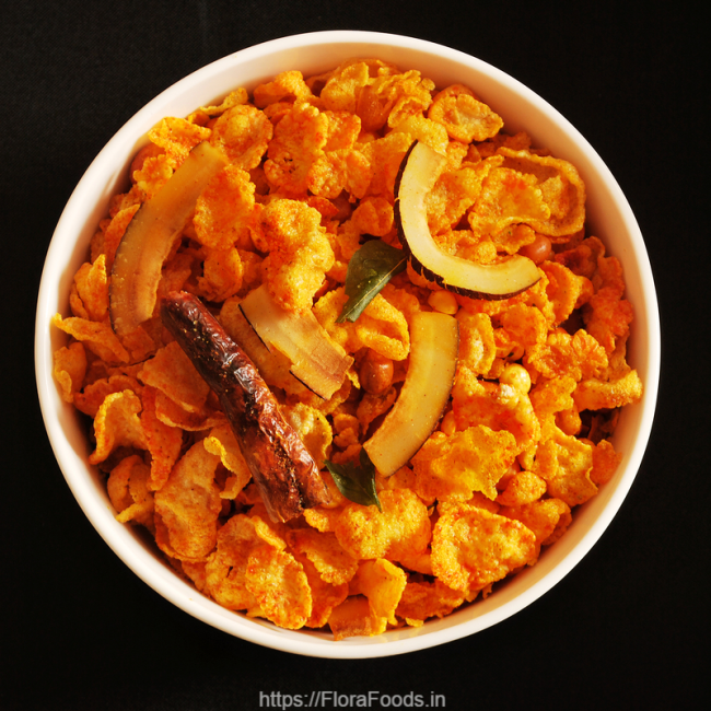 Savor the irresistible crunch of Corn Flakes Chewda, a North Karnataka specialty with a delectable twist. This deep-fried, ready-to-eat snack is infused with the goodness of fenugreek powder and an authentic South Indian seasoning, creating a flavor symphony that’s sweet, spicy, tangy, and oh-so-crave-worthy.