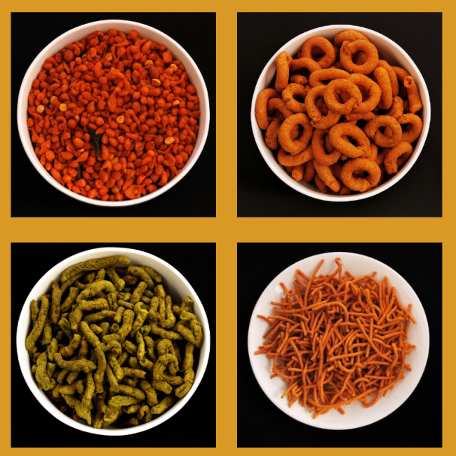 Stock up on Combo Packs: Stock up on Crunchy Snacks Products: Buy Combo of Kodbale, Sev, Paalak Ghaate and Khaara Boondi. Buy NOW and Save Money! Best value for money at FloraFoods. Delicious Products offered as a Money-Saver Pack. Buy NOW and Save Money!