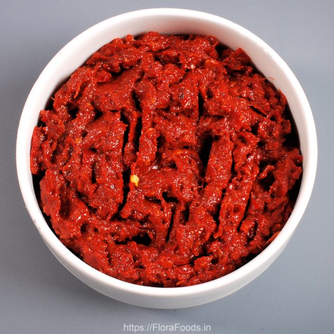 Byadgi Red Chilli, Salt, Hingu (Asfoetida), Menthe (Fenugreek seeds), Cumin seeds, Tamarind juice, Garlic
