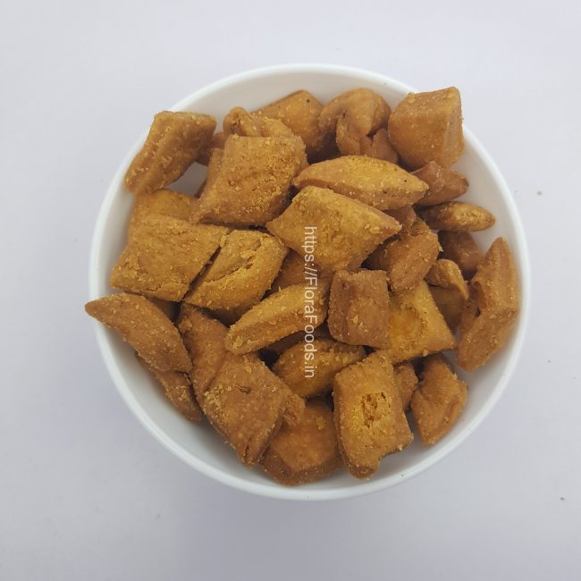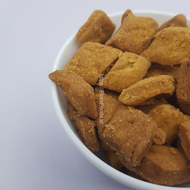 Originating from Maharashtra, the KHAARA Shankarpole / SPICY Shankarpali/Shakkarpara is a crisp, delectable, & flaky biscuit often prepared during festivals such as Diwali in the Indian household.