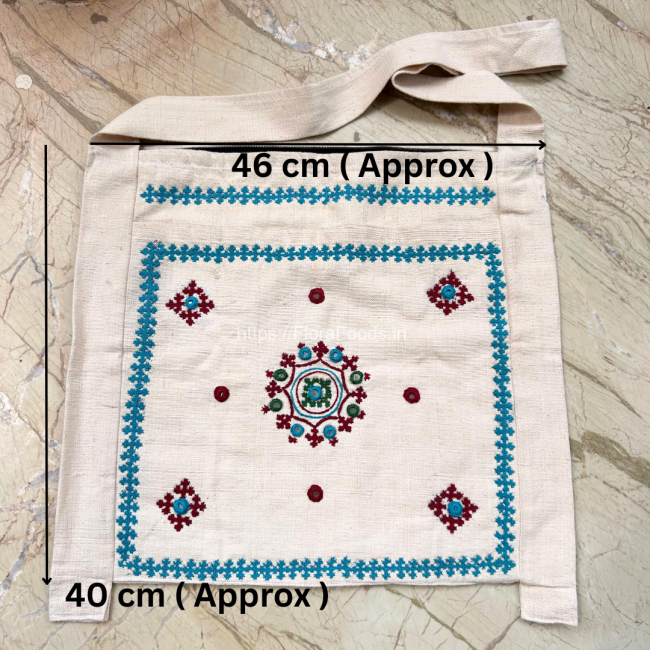 The Khadi White Side Bag with Blue Border – Design 6 blends natural simplicity with vibrant craftsmanship. Made from 100% pure cotton and bordered with a rich blue trim, this eco-friendly side bag is both timeless and bold.