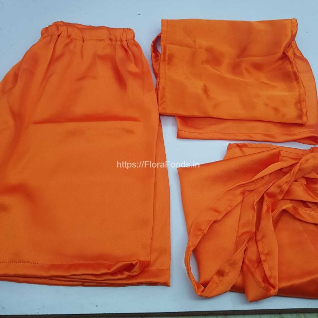 The boy is given a dhoti to wear. In some orthodox families, the boy wears only a loin cloth covering his genitals. This is called as Langoti. Langoti can be in Art Silk Material. The Same colour Shorts is given, if the Vatu feels Shy for wearing only Langoti.