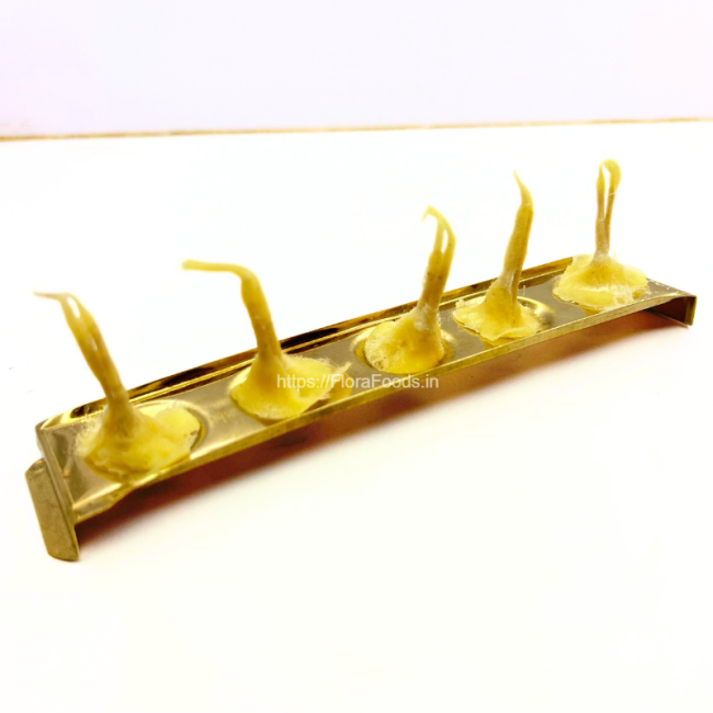- Saalu Deepa with 5 Diya Slots; weighs approx 35 gms– Ideal for special occasions, invoking prosperity and spiritual harmony.