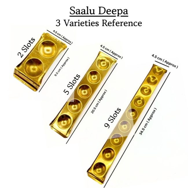 - Saalu Deepa with 9 Diya Slots; weighs approx 50 gms – A grand and auspicious design, perfect for poojas, temple settings, and festive celebrations.