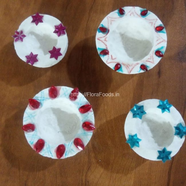 Sakkare BATTALU/Sugar BOWLS-PAIR (Set of 2) are colourful attractive Sweets prepared all alone with Sugar in White colour and colourful decorations. These were the the signature item of sweet distributed in Marriages and Munjavi. In olden days, in such auspicious occasions, it was a practice to give Sakkare Battalu instead of Sakkare or Sakkare Packet. This is A beautiful creative way of distributing sweets.