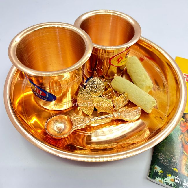 - Pancha Patra / Copper Tumbler (2) – Used for sacred water storage.