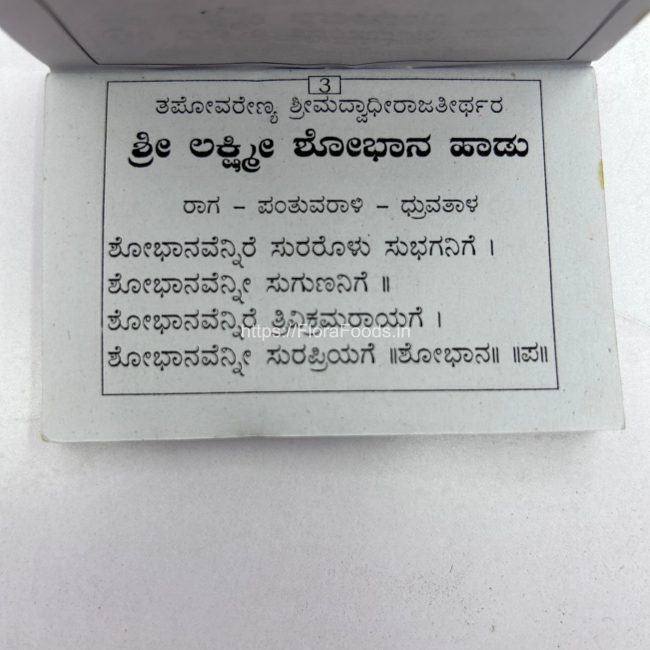 Order your copy of “Shree Lakshmi Shobhana Haadu” (Kannada) SMALL book now and invite auspiciousness and happiness into your life. Perfect as a gift for yourself or loved ones, it’s a must-have for every devotee.