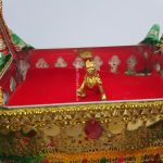 - A decorated ‘seru’ filled with rice along with jaggery is kept at the right side of the threshold.