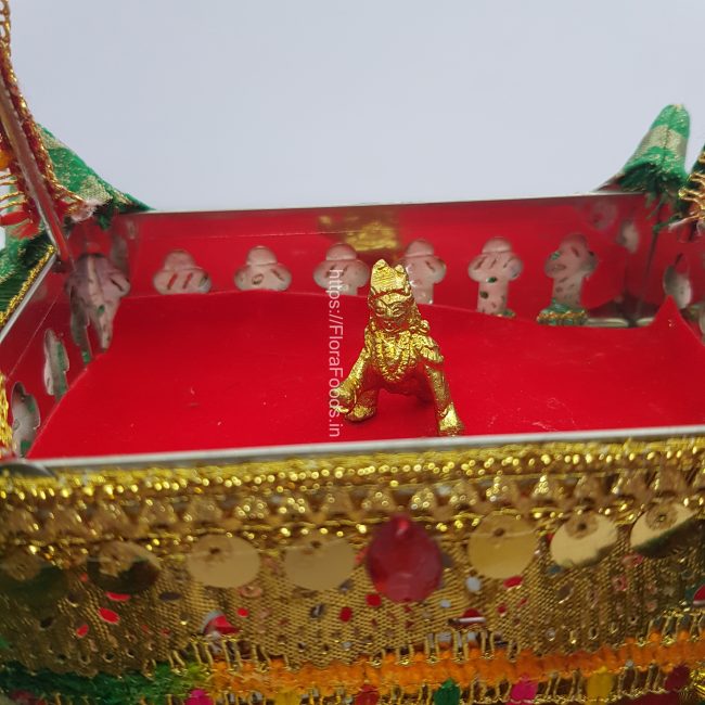 Hence, Flora Foods is here to provide this type of beautiful Tottilu with Krishna IDOL & Kunchagi /Cradle with Krishna IDOL & Bonnet. Proudly Enjoy the auspicious moments with specially decorated items.