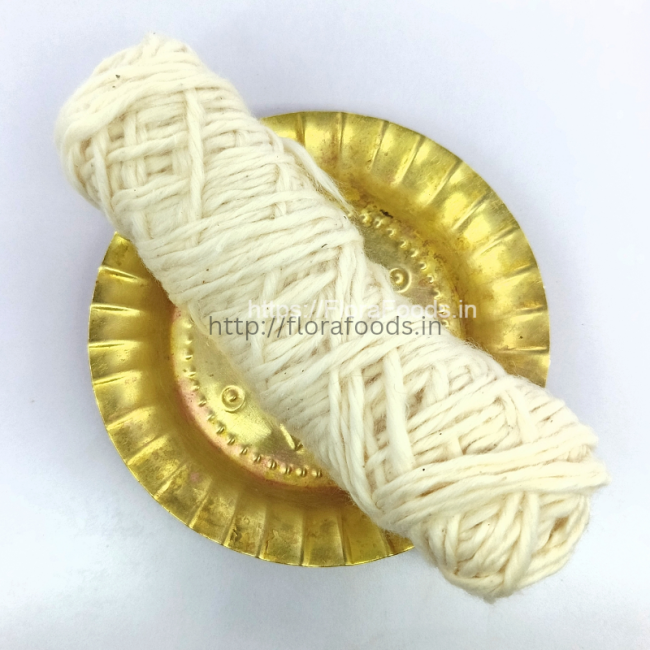Flora Foods is giving hand made Pure cotton Yele Batti (Long Cotton Wick). These are prepared by women of all age groups with love and devotion. They prepare them while listening to Pravachanas or singing bhajans.