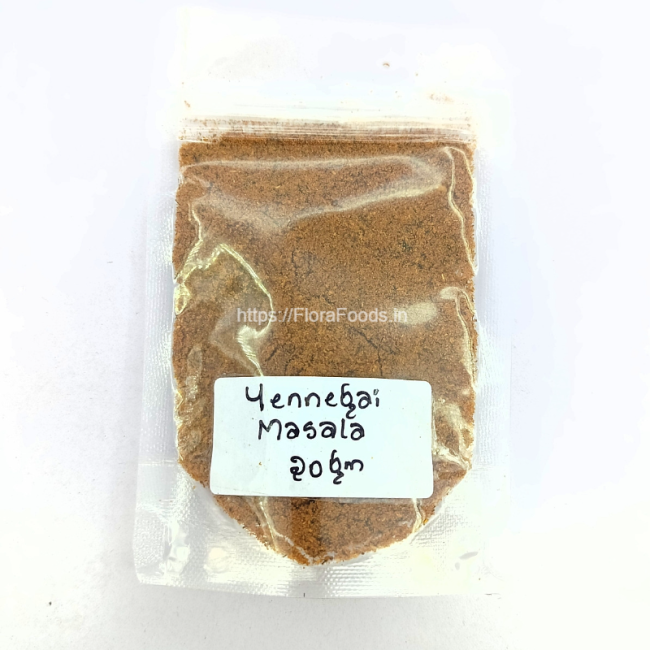 Compromising a versatile blend of the freshest & finest spices, the Yennegai(stuffed Brinjal) Masala Powder is the hero ingredient used primarily in the preparation of stuffed eggplant curry/gravy. Also, this powder can be combined with other ingredients to make different curry dishes.